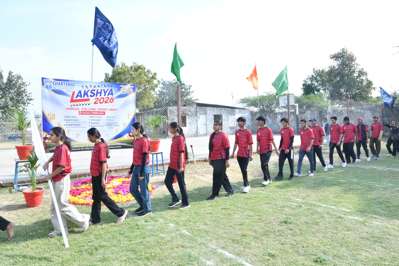 The Chartered Institute of Technology celebrated its Annual Sports Day 'Lakshya' on December 22, 2023. The college's playground served as the venue for the day's events. The festivities commence with an address from the Principal Dr. Rajnesh Yadav. Students from all semesters took part in a variety of activities, including volleyball, slow cycling races, kabaddi, badminton, Kho-Kho, as well as indoor games such as carom, chess, and table tennis. The Principal awarded medals and certificates to the winners. The day came to a close with a vote of thanks from the Principal and a round of applause for all participants.