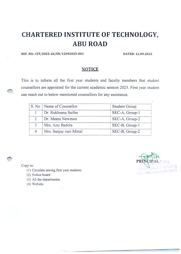 My experience at CIT engineering college has been wonderful. I got placed into my dream company. Faculties are very helpful, supportive and readily available. The course and individual lessons have been clear and coherent, full of learning and grooming oneself.