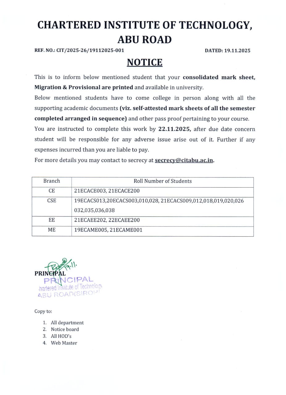 My experience at CIT engineering college has been wonderful. I got placed into my dream company. Faculties are very helpful, supportive and readily available. The course and individual lessons have been clear and coherent, full of learning and grooming oneself.